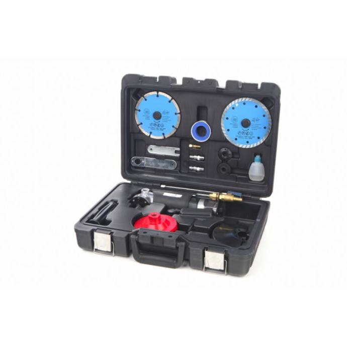 lagano aluminijsko kućište s dvobojnim mekim rukohvatomsa sigurnosnom upravljačkom polugomstroj je opremljen dovodom vodedjeluje bez prašine i vrlo je pogodan za brušenje mramora i kamena125 mm. Dijamantno brusni disk. (Za suho brušenje)125 mm. Dijamantno brusni disk. (Za mokro brušenje)100 mm. Dijamantna zdjela za brušenjeplastična kutija za pohranu.]]>
