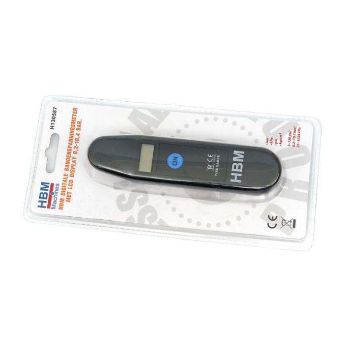 Posebne karakteristike Jasno čitljiv digitalni zaslon Pogodan za određivanje tlaka u gumama velikog broja vozila Isporučuje se s 2x LR44 baterijom Raspon tlaka u gumama može se prikazati u barima, psi, kPa i kg/cm²HBM digitalni mjerač tlaka u gumama posebno je kompaktan i praktičan mali uređaj za mjerenje tlaka u gumama osobnih automobila, skutera, lakih mopeda, bicikala i drugih vozila. Prikaz tlaka u gumama opcijski se prikazuje u tlaku (bar), psi, kPa ili kg/cm2. Nakon korištenja, mjerač će se automatski isključiti nakon 30 sekundi.Tehnički opis:Traka prikaza, kPa, psi, kg/cm²Raspon u barima 0,2 - 10,3 baraRaspon u psi 3 - 150 psiRaspon u kPa 21 - 1034 kPaRaspon u kg/cm² 0 - 10 kg/cm²Automatsko isključivanje da, nakon 30 sek.Baterija 2x LR44 (uključena)Težina 73g2x LR44 baterija]]>