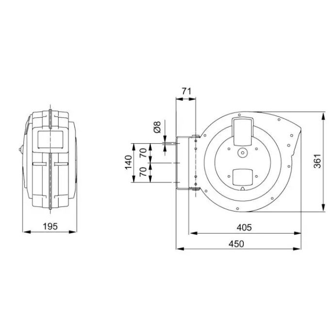 Okretno kućište se montira na držač na dva načina. Prati kut crijeva za komprimirani zrak, čime se sprječava njegovo savijanje i osigurava da se crijevo za komprimirani zrak potpuno vrati, čak i iz nagnutih položaja.Voljci za vođenje crijeva