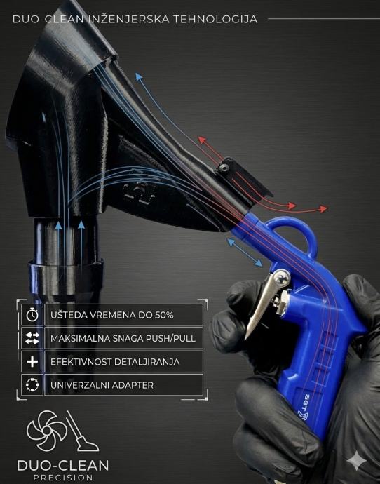 Ovaj inovativni nastavak omogućuje vam da istovremeno spajate pneumatski pištolj (ili Tornador) i usisavač, stvarajući moćan sustav za automatsko puhanje i usisavanje.