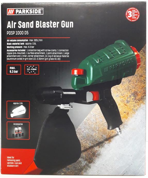 Pneumatski pištolj za pjeskarenje PARKSIDE model PDSP 1000 D5, novo nekorišteno.