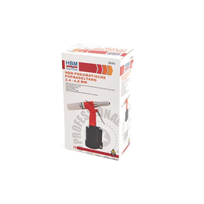 Posebne karakteristikeOvaj pneumatski alat za zakivanje s lakoćom zakiva čavle do 4,8 milimetara u čelik i aluminij.Pop kliješta za zakovice teška su samo 1,45 kilograma, tako da nećete lako patiti od ruke ili zgloba dok radite s ovim strojem.Ovim HBM alatom za zakivanje možete upravljati jednom rukom.OpisHidraulički klip HBM pneumatskog alata za zakivanje 2,4 - 4,8 mm daje dodatnu snagu. Zahvaljujući vučnoj sili od ne manjoj od 900 kilograma, ovaj alat za zakivanje prikladan je i za najteže radove. Zbog iznimno velike brzine, možete vrlo dobro koristiti ovaj pneumatski alat za zakivanje za profesionalnu upotrebu. U bilo kojem položaju možete jednostavno rukovati alatom za zakovice samo jednom rukom.S vučnom silom od 900 kilograma i težinom manjom od 1,5 kilograma, ovaj HBM-ov pneumatski alat za zakivanje je uistinu mala snaga. Zakovice do 4,8 milimetara mogu se s lakoćom zakucati u metale kao što su aluminij ili čelik. Ovaj pop alat za zakovice prikladan je za profesionalce, kao i za kućne majstore i hobiste. Pogodnost ovog pneumatskog alata leži u činjenici da se kliještima može rukovati samo jednom rukom. Na taj način imate drugu slobodu da zadržite materijal s kojim radite na mjestu. HBM alat za zakovice dostupan je i u drugim verzijama.Tehnički podaci:Kapacitet zakovice: 2,4 3,2 4,0 4,8 mmVučna sila: 900 kgDuljina hoda: 16 mmRadni tlak: cca 6 baraPotrošnja zraka: 0,85 L po hoduTežina: 1,45 kg]]>