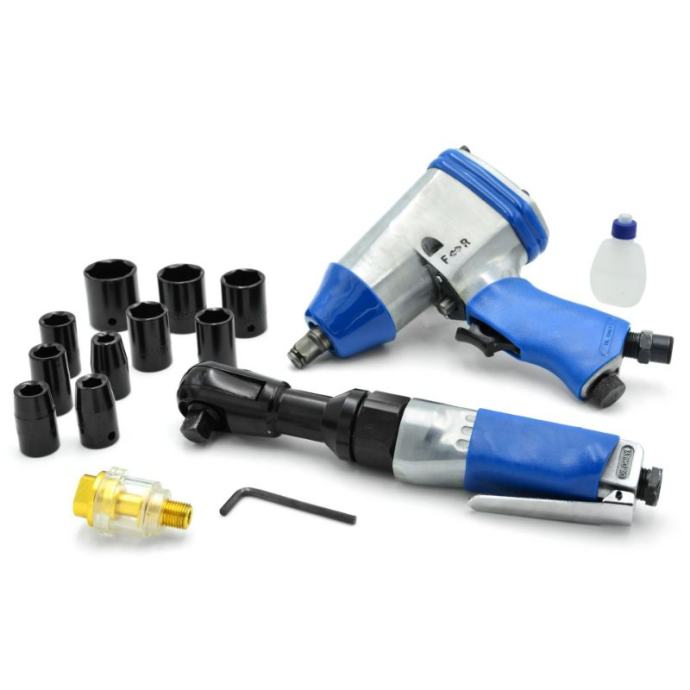 1/2" pneumatski odvijačTehničke opis:brzina vrtnje 7000 okretaja u minutimaksimalni udarni moment 850 Nm1/2" kraj utičnicerotacija lijevo/desno1/4" zračni priključakTehnički podaci za Pneumatsku čegrtaljku 1/2"brzina vrtnje 160 okretaja u minutimaksimalni udarni moment 80 Nm1/2" prihvat za nasadne ključeverotacija lijevo/desno1/4" zračni priključakSadržaj setanasadni ključevi 9, 10, 11, 13, 14, 17, 19, 22, 24, 27 mmnauljivač uključen u dodatke1/2" pneumatski odvijač1/2" pneumatska čegrtaljka]]>