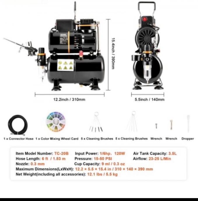 Naš komplet za bojanje zračnim kistom uključuje set zračnog kista od 0,3 mm (kovčeg s alatom, komponentu zračnog kista od 0,3 mm, brzu spojku, cijev za kapanje, ključ), pleteno crijevo, držač zračnog kista, karticu u boji, 5 četkica za čišćenje, 5 igala za čišćenje i priručnik s uputama. Pogodan za korištenje i održavanje.