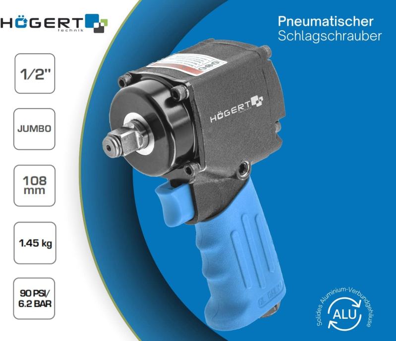 Högert HT4R626 pneumatski/zračni pištolj1/2" 680Nm kratki 1,45kg