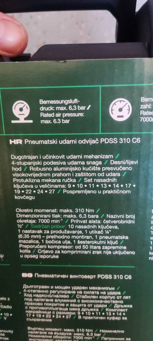 Prodajem pneumatski udarni odvijač ili zračni pištolj Parkside PDSS 310 C6,novo nekorišteno!