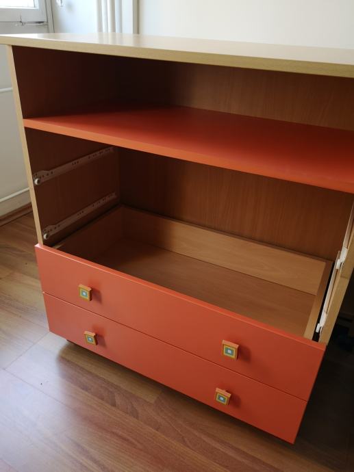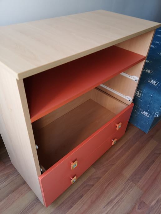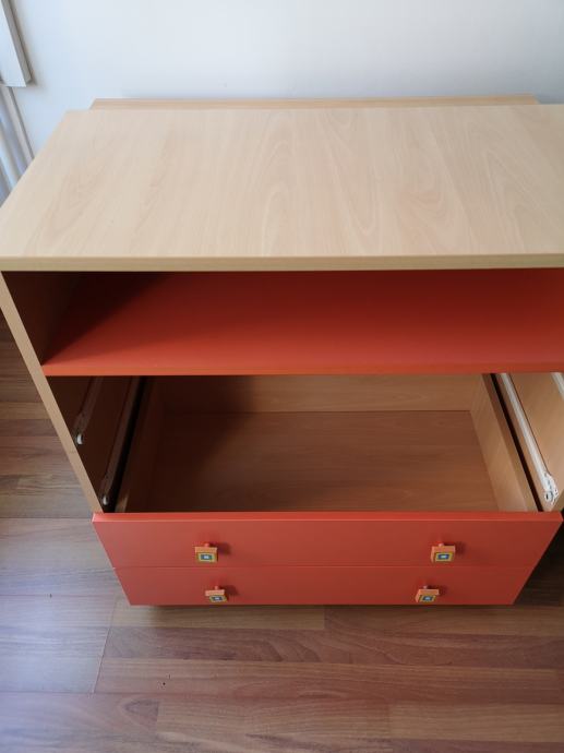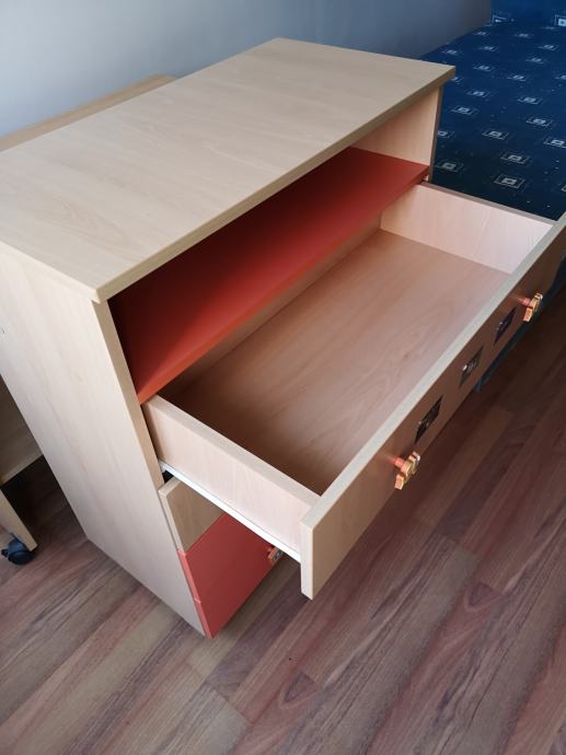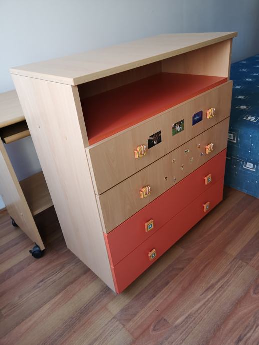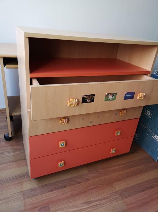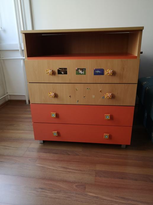 Povoljno prodajem dječju komodu s 4 ladice i policom. Prvotno je bila korištena za prematanje (praktična polica ispod), a potom kao komoda u dječjoj sobi.
