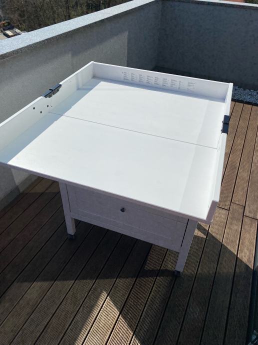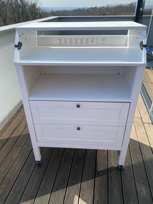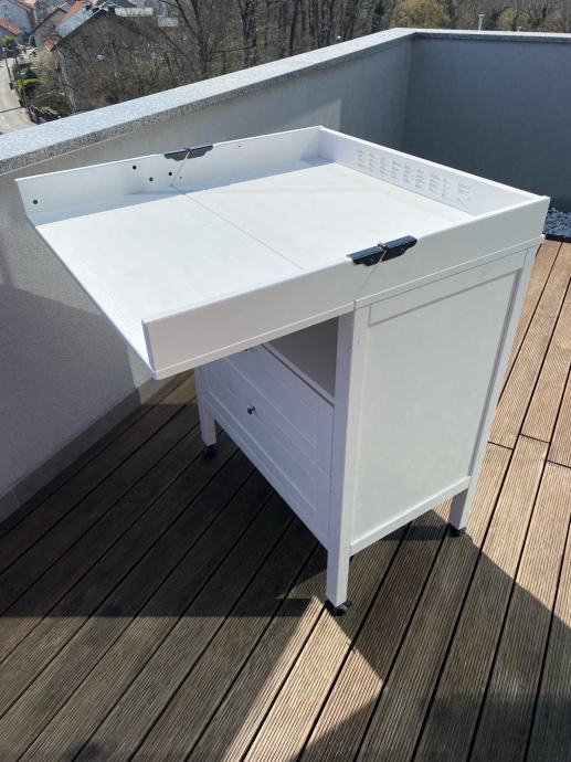 Prodajem dječji ormarić za prematanje s dvije ladice i policom u odličnom stanju. Dosta robice stane u njega. Dodatno sam na njemu napravio kotačiće radi lakšeg premještanja po kući.