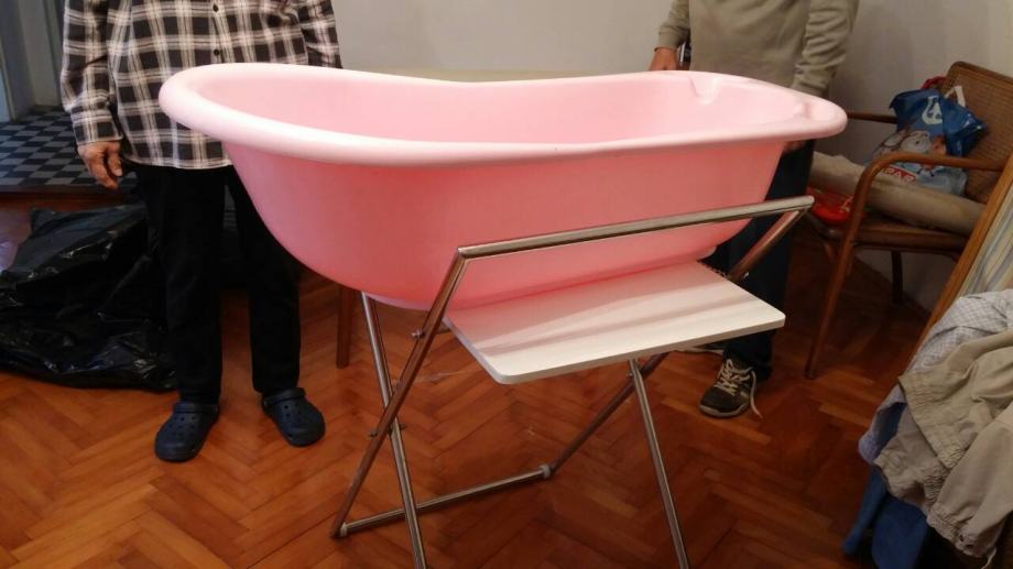 Prodajem rasklopivi dječji stol za kupanje i prematanje izrađen po narudžbi od rostfrei konstrukcije + dječja kadica.