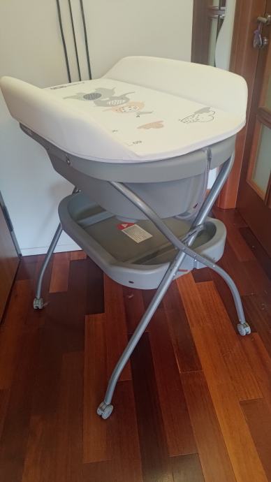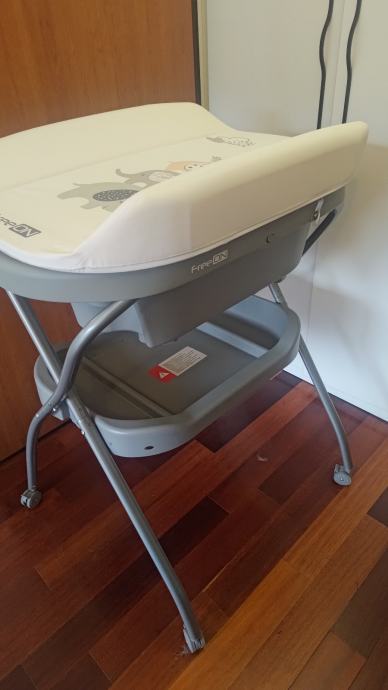 Podloga za presvlačenje beba s kadicom na metalnom postolju.