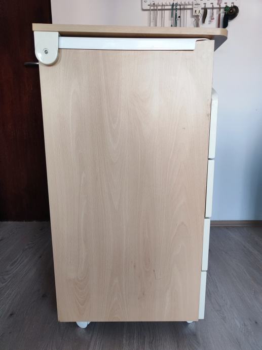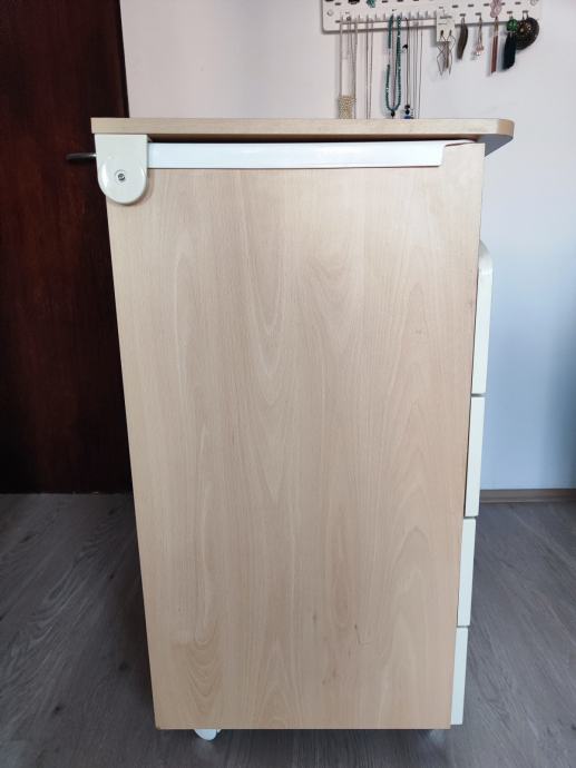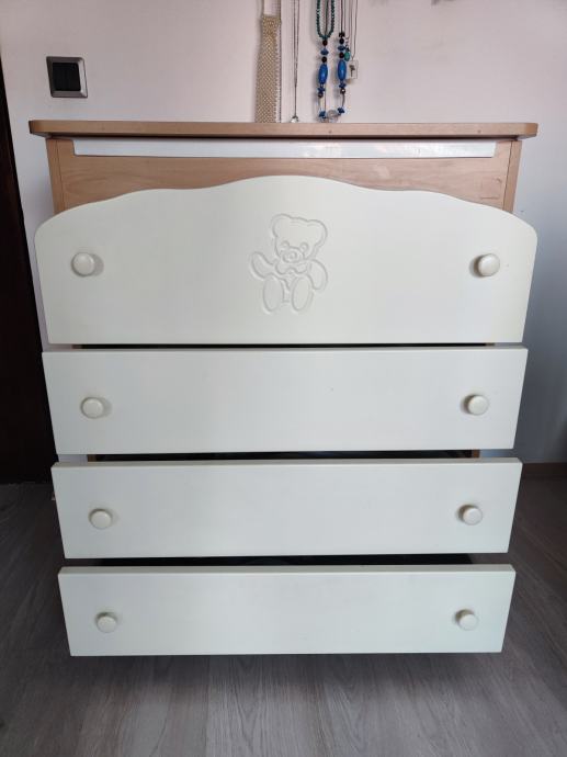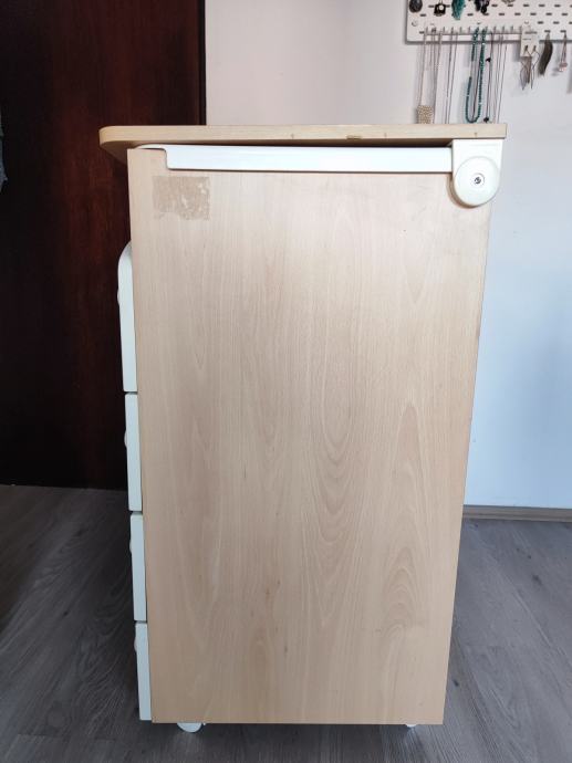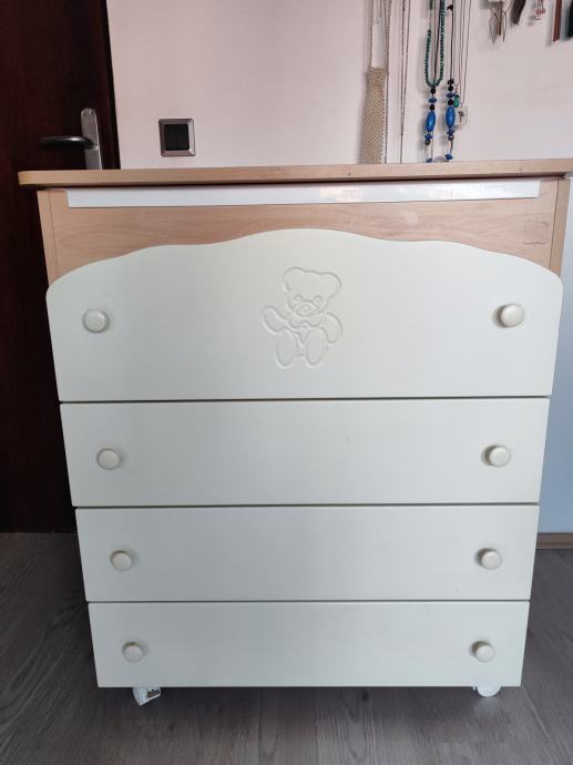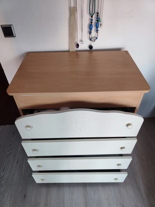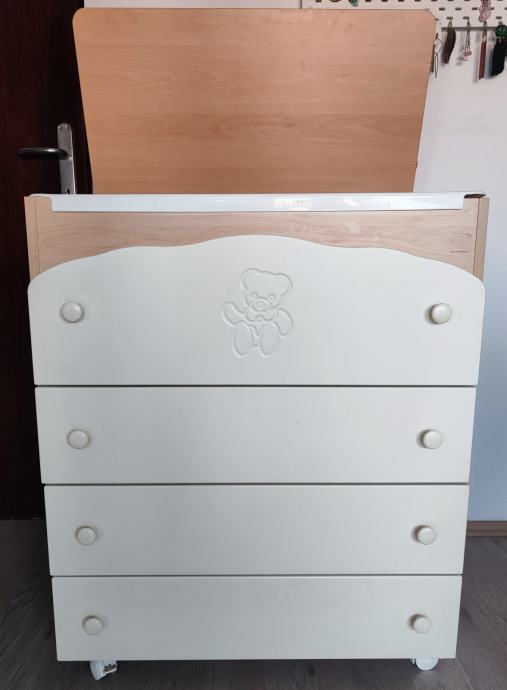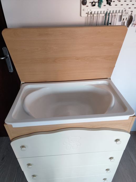 Komoda za previjanje i kupanje s 4 ladice i kadicom (bez podloge za previjanje) na kotacice. Ocuvana, u izvrsnom stanju. Dimenzije komode: 76 cm (dužina) x 88 cm (visina) x 47 cm (dubina)