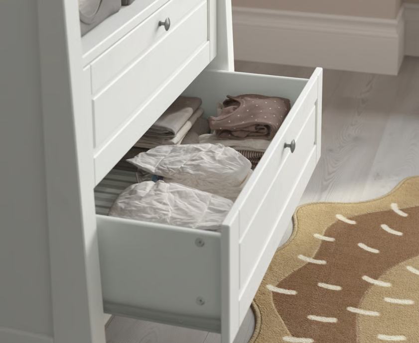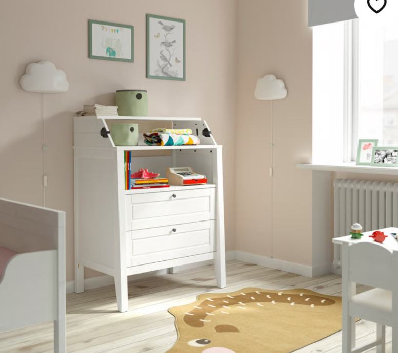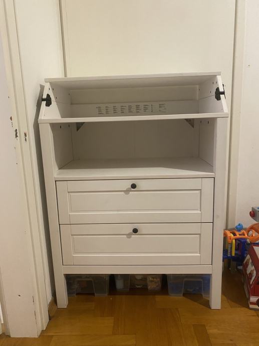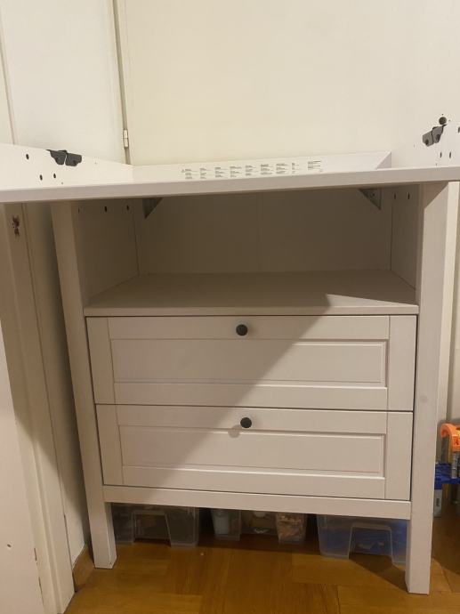 Ima dvije ladice i veliku policu