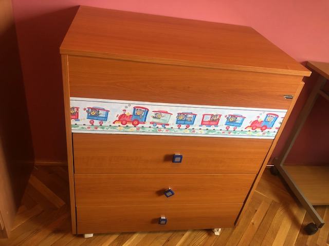 prodajem dječju komodu za previjanje Adax, na kotačima, 3 prednje ladice i jedna veća bočna za kadicu