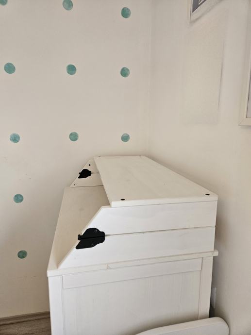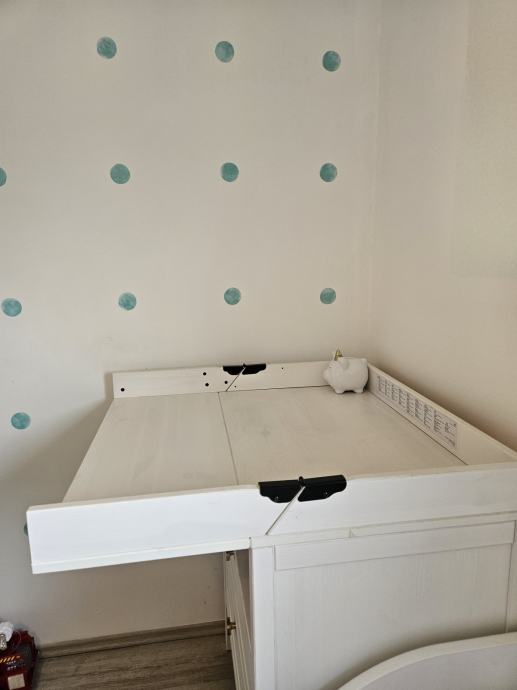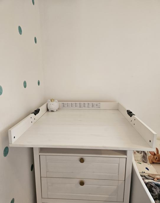 Prodajem komodu za prematanje kupljenu 2022. godine u Ikei, korištena kao prematalica dvije godine, i zadnjih pola godine kao komoda za stvari. Spretna je jer se gornji dio može sklopiti i otklopiti po potrebi. Ima dvije prostrane ladice i mjesto za odlaganje izmedu gornjeg dijela i ladica. Vidi se da je korištena ali nema velikih oštećenja i slično. Preuzimanje u komadu ako je moguće, u Ribnici, Velika Gorica ili po dogovoru.