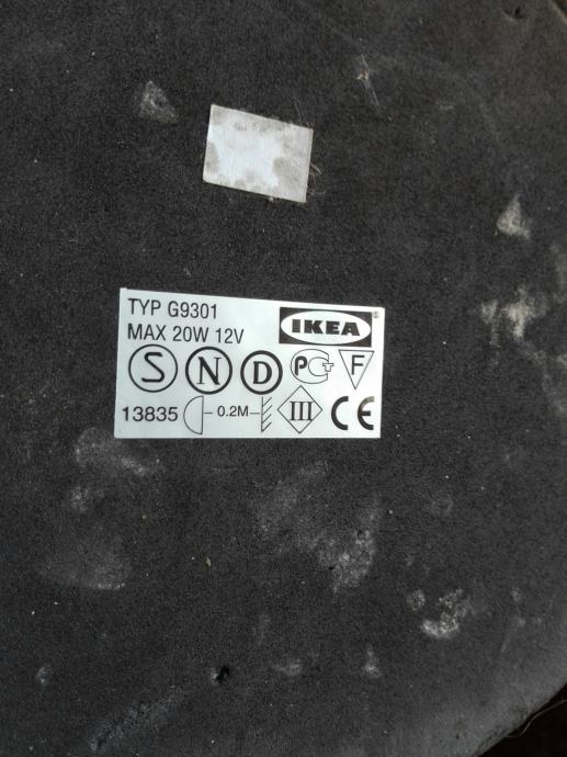 Lampa tj svjetiljka. Ništa nije potrgano, boja na doljnem dijelu svijetiljke je pomalo izbljedila. Utikač za struju nije standardan.