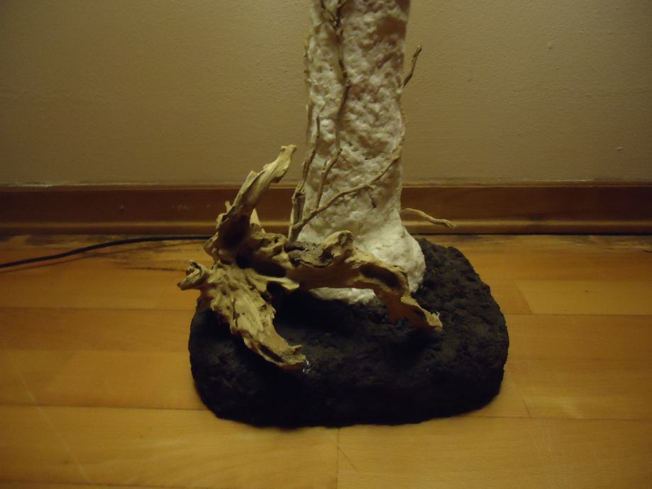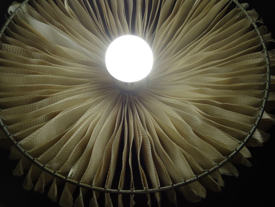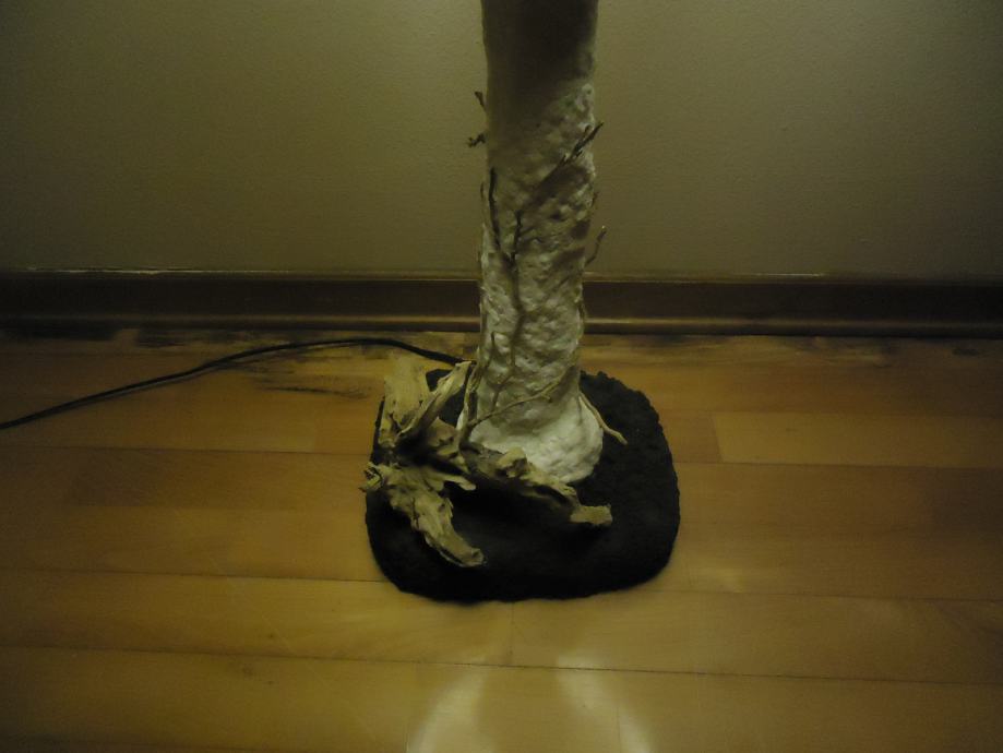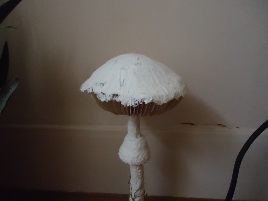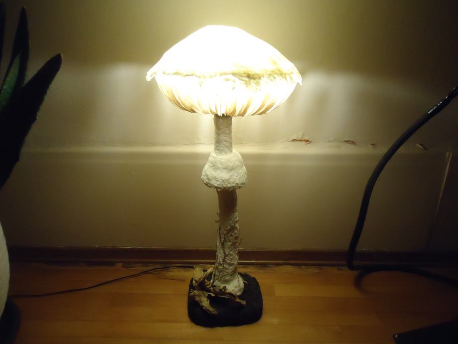 Unikatna podna lampa u obliku gljive, promjera 30 cm i visine 85 cm, u potpunosti ručni rad, izrađena od drveta, žice i kaširanog papira.