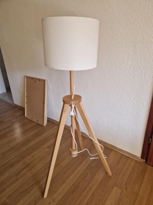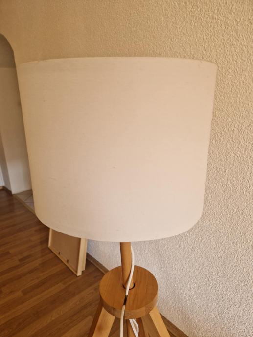 Bijelo-smeđa (platno-drvo) ispravna podna lampa za dnevni boravak, spavaću sobu ili ured.