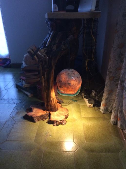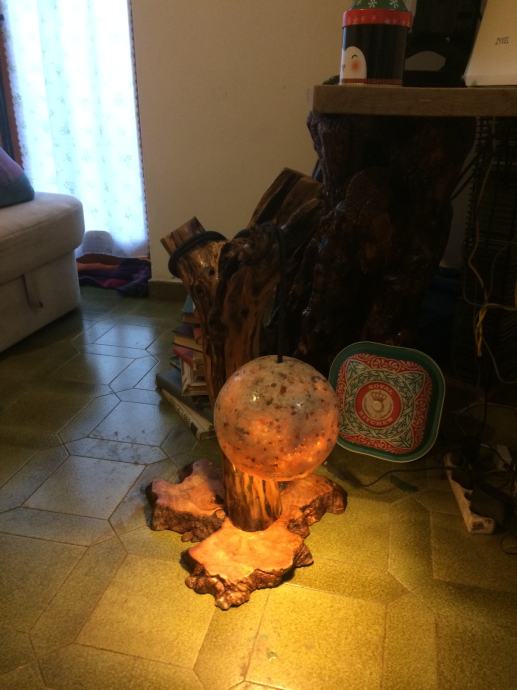 podna lampa od kristala kalcita i drva masline.zamjena za laptop