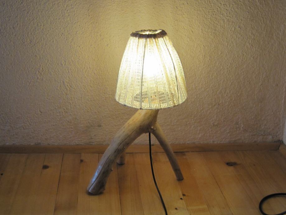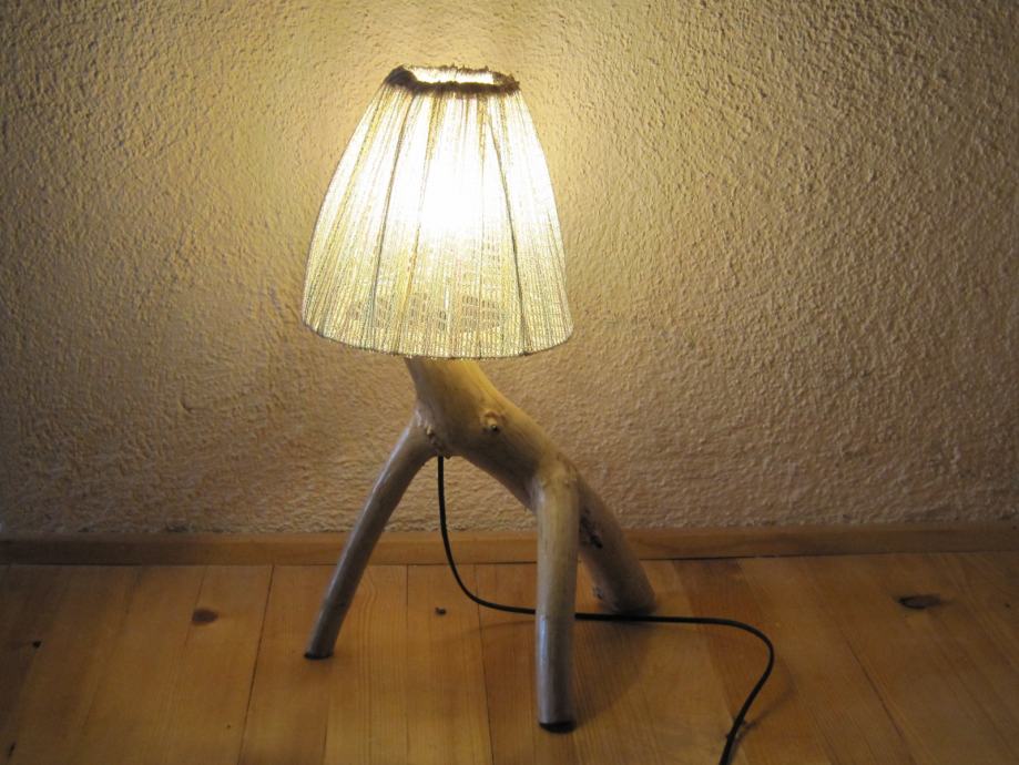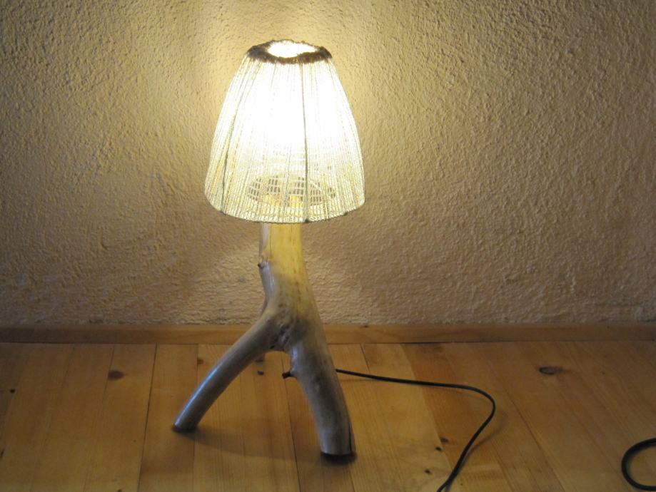 Tijelo lampe je izrađeno od suhog drenovog drveta . Kroz tijelo je probušena rupa i stavljena mesingana cijev sa navojem kroz koju prolazi kabal , a ujedno je i nosač grla kao i sjenila . Sjenilo ( okvir ) je izrađeno od lakirane pocinčane žice i na njega je navučena dekorativna tkanina .. Žarulja može biti štedna ili LED . U ovom slučaju je LED jer daje ugodno svijetlo a jako se malo zagrijava i ima dugi vijek trajanja . Palenje lampe je na prekidaču koji se nalazi na kablu , a može se izvesti i daljinsko palenje samo ono nije uračunato u navedenu cijenu .