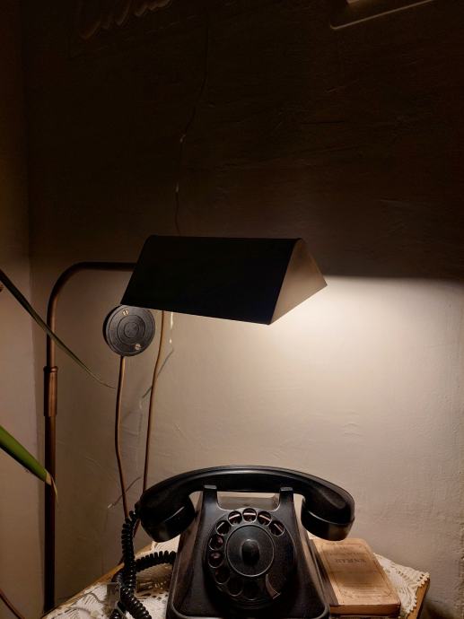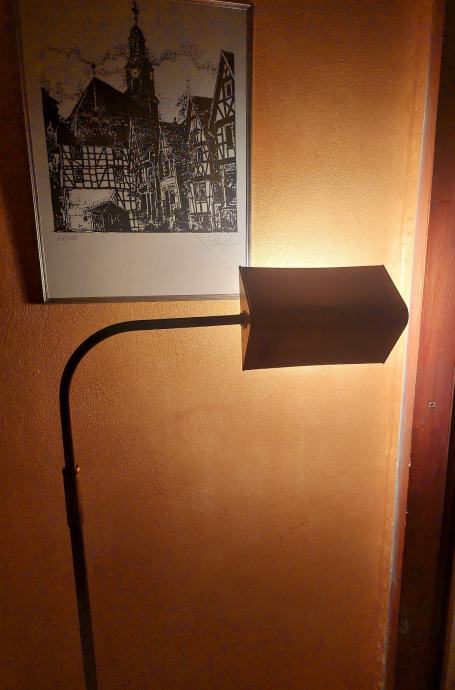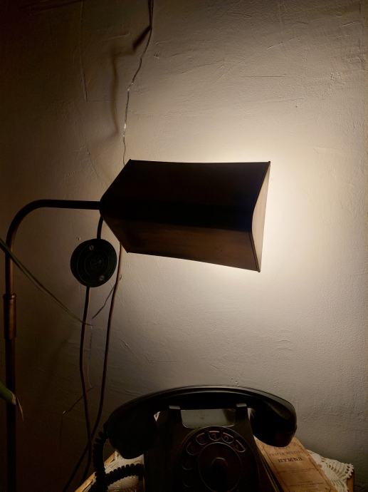 Prodajem vintage podnu lampu iz 1970-ih, izrađenu od mesinga. Elegantnog retro dizajna s pravokutnim sjenilom, daje ugodno i usmjereno svjetlo – idealna za dnevni boravak, kutak za čitanje ili vintage interijer.