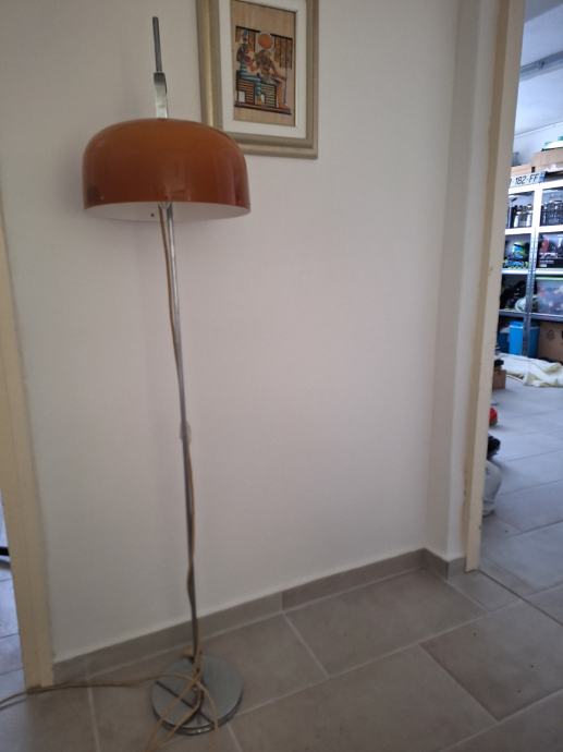 Prodajem Meblo Guzzini vintage podnu lampu iz 1970ih s metalnim srebrnim postoljem i klizećim narančastim sjenilom, za Meblo dizajnirao Harvey Guzzini. U odličnom stanju, vrlo očuvana.