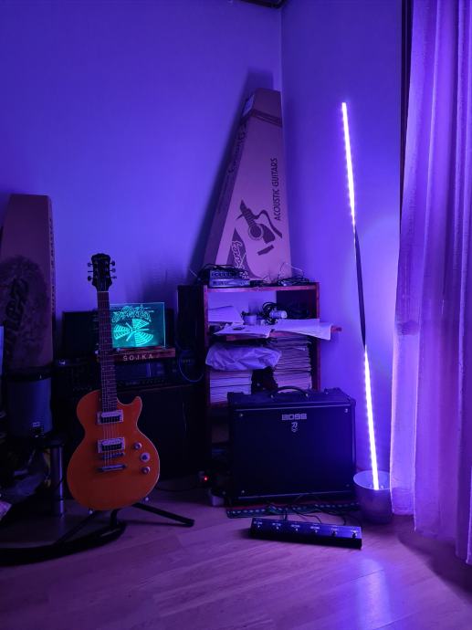 Prodajem samostojeću led svjetiljku rađenu od specijalnog flex aluminija sa led diodama SMD 5050 koje mijenjaju boje i daljinskim upravljačem IR (infra crveni).visina lampe je metar i pol i može služiti kao dekoracija gdje god poželite.