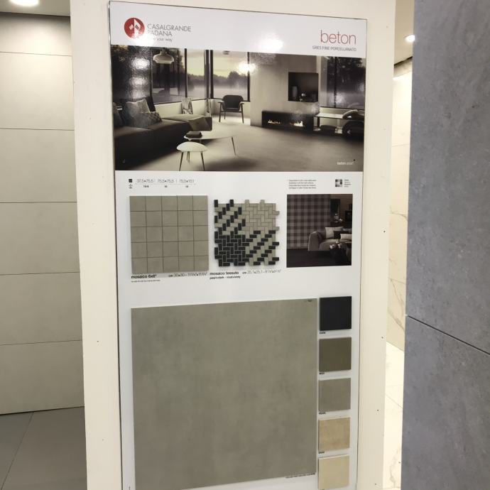 Novouređeni skladišno-zložbeni centar nalazi se lokaciji Kopilica 25 B , a u reprezentativnom izložbenom je prostoru na jednom mjestu objedinjena ponuda pločica tvornica Saime i Casalgrandepadana što u modernom graditeljstvu predstavlja vrhunac kvalitete u gres keramici te uređenju interijera, uz najkvalitetniju uslugu dobave istih iz asortimana tvrtke.