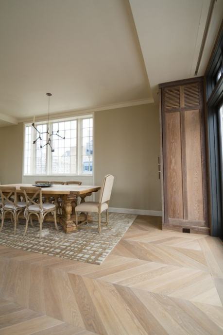 Također nudimo parket HRAST DVOSLOJNI BIJELJEN ,ČETKAN I MAT LAKIRAN. za slaganje u Chevron varijanta (kut 45°), dimenzija 10/3x90x 510 mm.