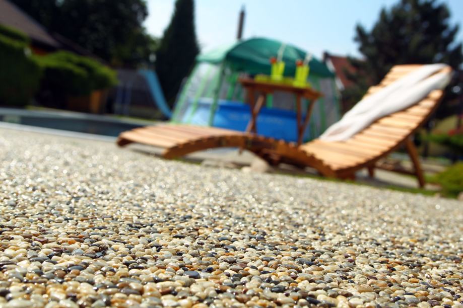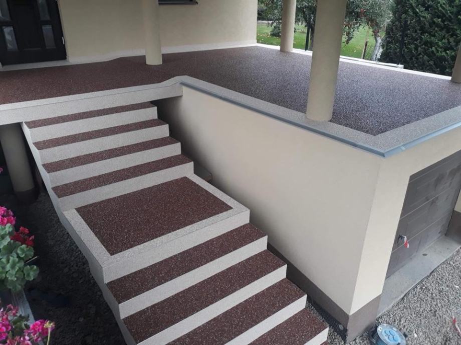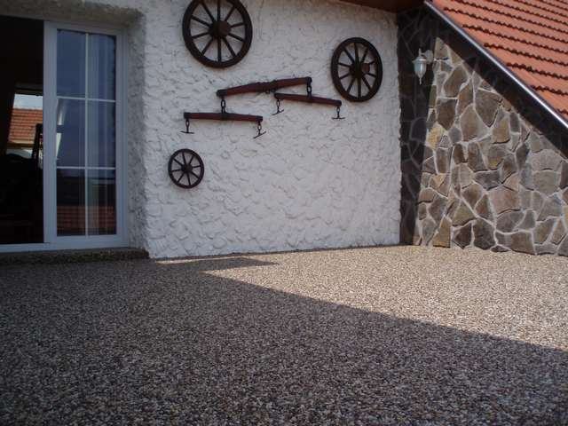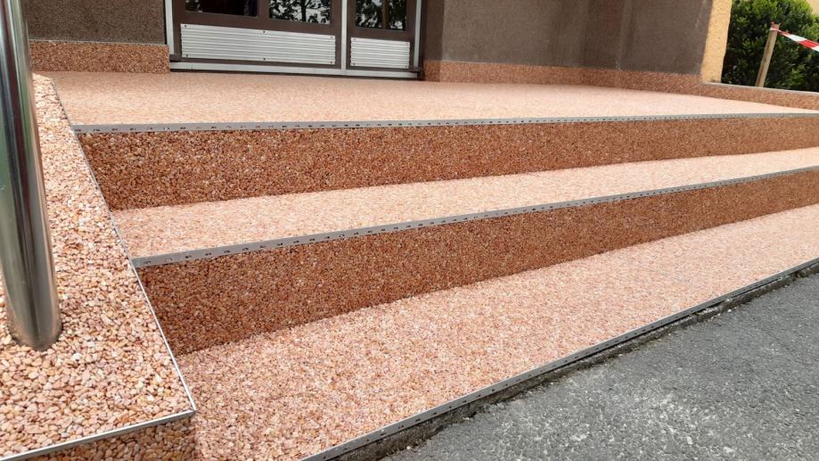 Kameni tepih se sastoji od sitnog prirodnog kamena različitih oblika i boja, a vezuje ga epoksi smola. Ovakva vrsta poda je otporna na vodu, temperature, protuklizna....