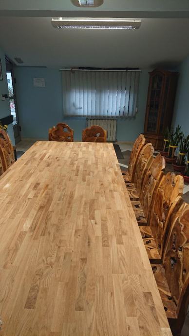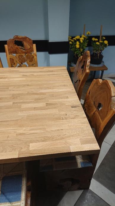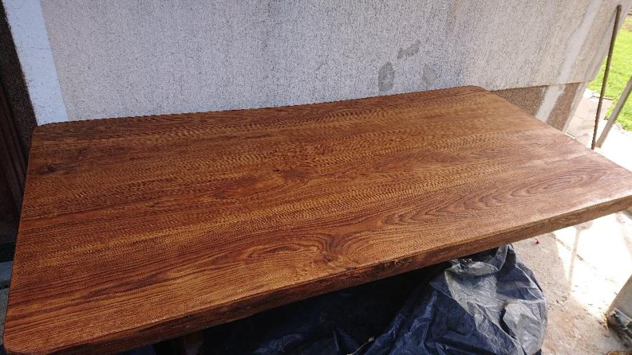 Ploče stolova obrađene epoksijem, uljeno, lakirano, bajcano.
