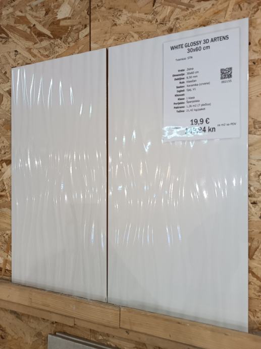 Keramičke pločice 1. klase za kupaonicu White Glossy 3D (30x60cm)