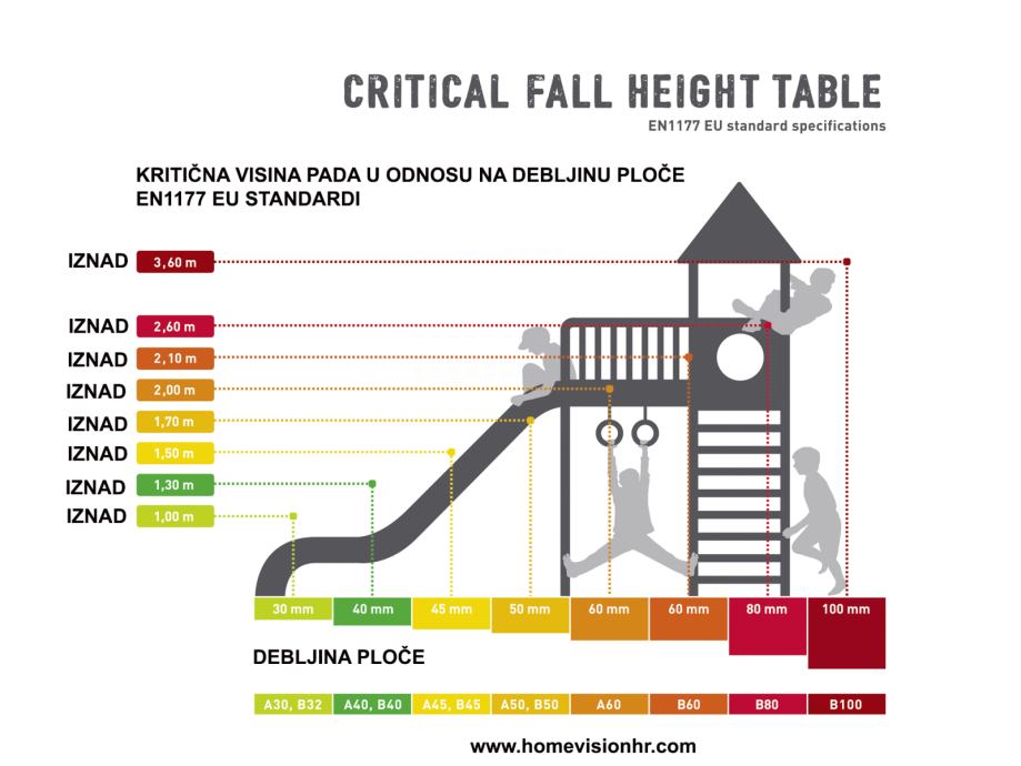Sigurna visina pada za 3 cm debljinu (testirana) do 100 cm visine