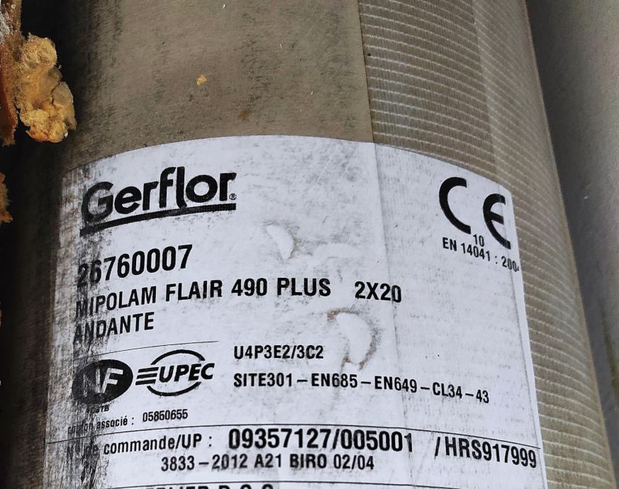Homogena podna PVC obloga GERFLOR "Mipolam Flair 490 Plus", u roli 2m širine, 20 m dužine ( 40m2 ), u boji Andante ( 0007, sivozeleni teraco izgled ).