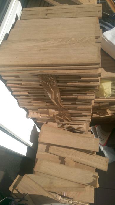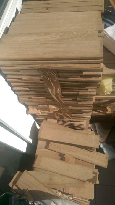 Dug 30, sirok 6 cm, debeo 12 mm. Novi, slozen, nekoristen, 40m2, u kompletu prodajem, cijena 1000 kn za kompletan parket.
