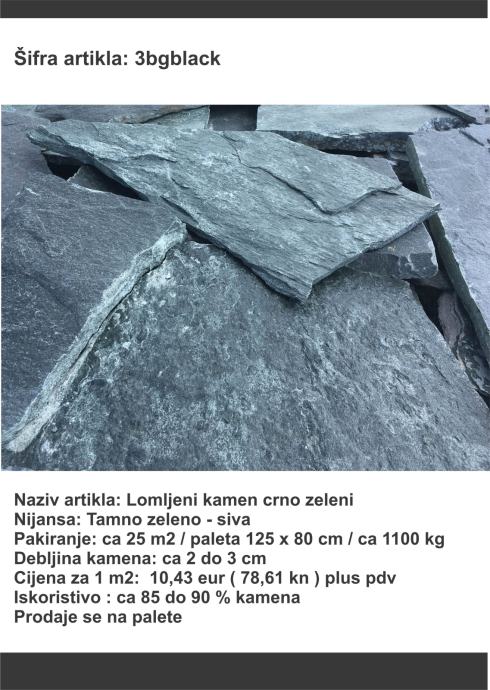 Lomljeni kamen crno-zeleni - debljine 2 - 3 cm