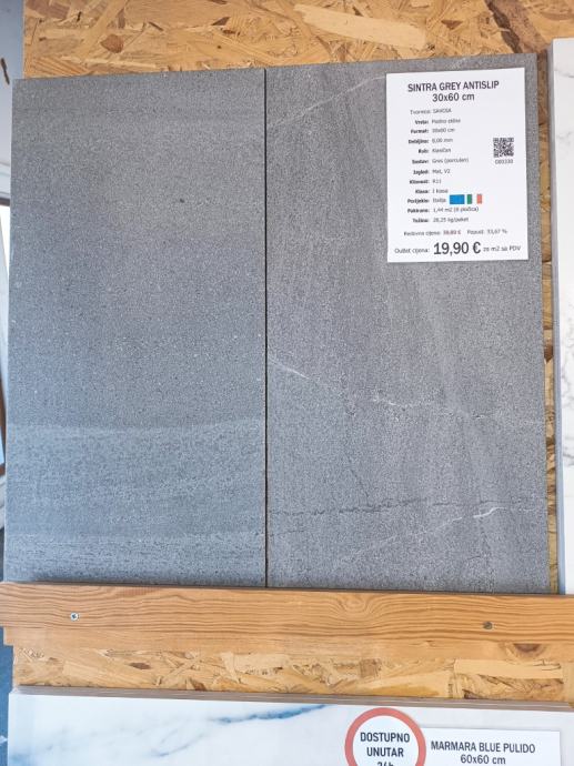 Talijanske gres pločice 1. klase. Mat, sastav gres (porculan), dimenzija 30x60, R11 protuklizne za terase. Na lageru, dostupne za preuzimanje odmah.