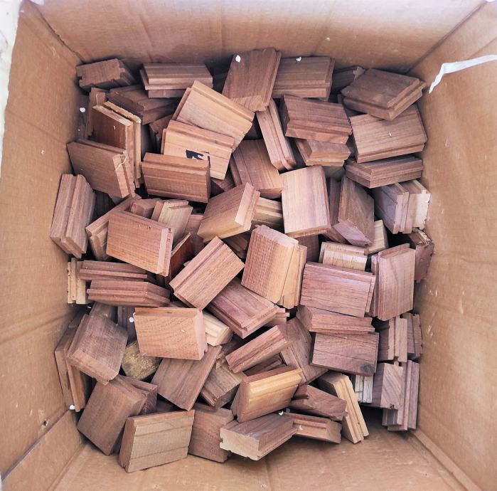 Prvoklasni masivan PARKET od ORAHA, u formi elemenata za umetanje u mustru kod slaganja hrastovog ( primjer na slici ) ili nekog drugog parketa.