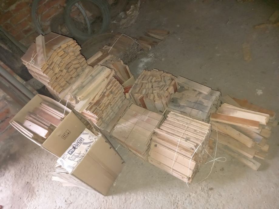 Ima ga cca 700 kom. To je cca 7.1 m2. A možete i sami izračunati.... Mislim da je hrast. Dugo stoji na tavanu i itekako je dobro suh !