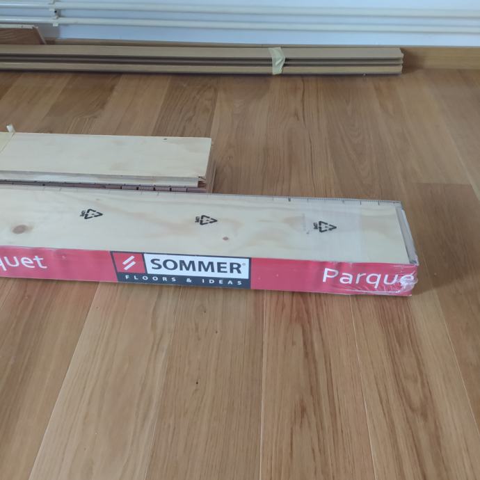 Prodajem parket SOMMER hrast debljine 13,5mm cca(širina 14 cm, dužina 2m) cca 5m2 i ukrasne lajsne 10m.