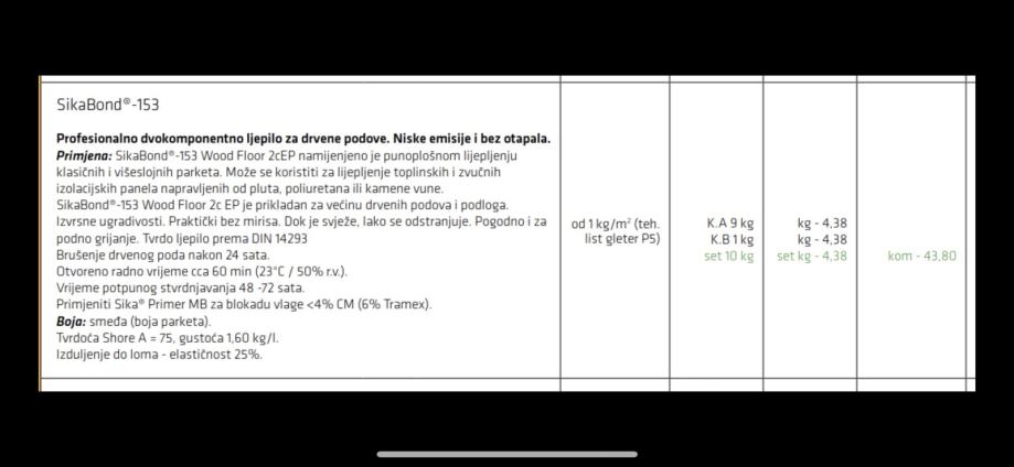 SikaBond®-153 Wood Floor 2C EP je dvokomponentno ljepilo vrlo dobre obradivosti, bez otapala, za lijepljenje drvenih podova.