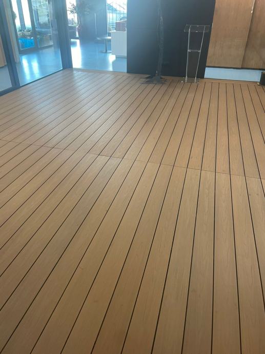 Sastav WPC deckinga: 60% piljevina od tvrdog drveta, ostalo tvrda plastika i boja.