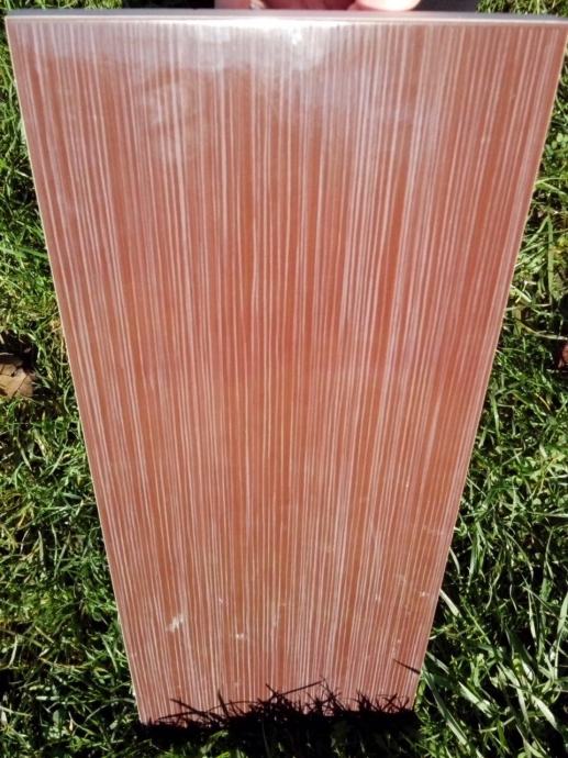 Zidne pločice smeđe sa krem prugama dimenzija 20x50 cm. Količina cca 25 kvadrata.