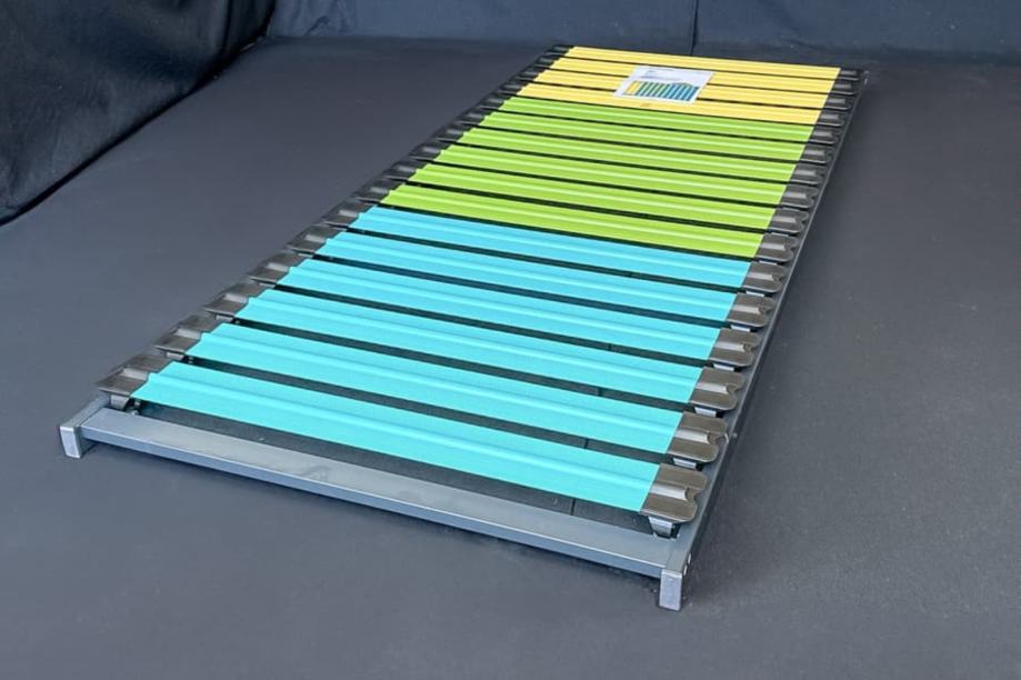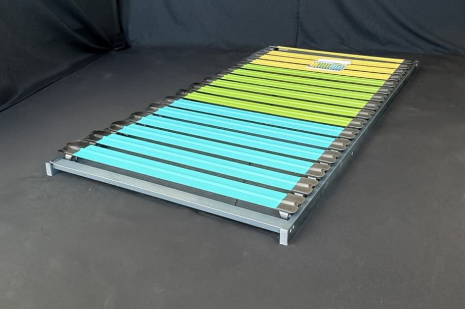Podnica Click&Sleep X1 ima letvice od stakloplastike i plastike, što je čini vrlo fleksibilnom i izdržljivom. Boje (žuta, zelena, plava) označavaju različite razine tvrdoće, a prilagođavanje osjećaja ležaja postiže se jednostavnim premještanjem letvica.