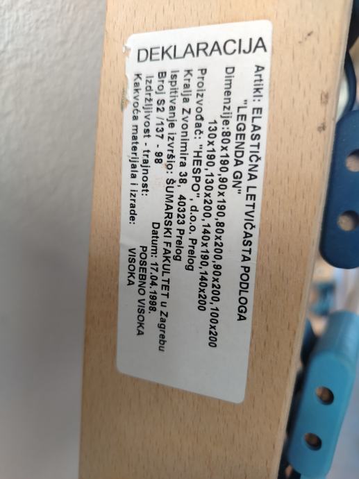 Dimenzije podnice su 190x90 i ima za podizanje mehanički dio za glavu i donji dio noge.