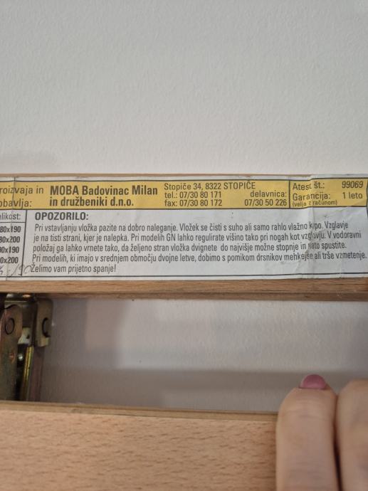 Podnica podesiva, gornji i donji dio se podize, velicina 70x190cm