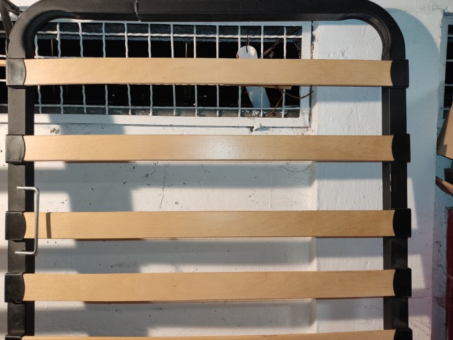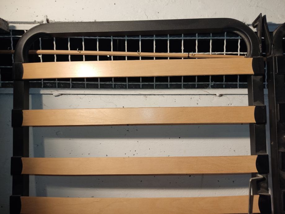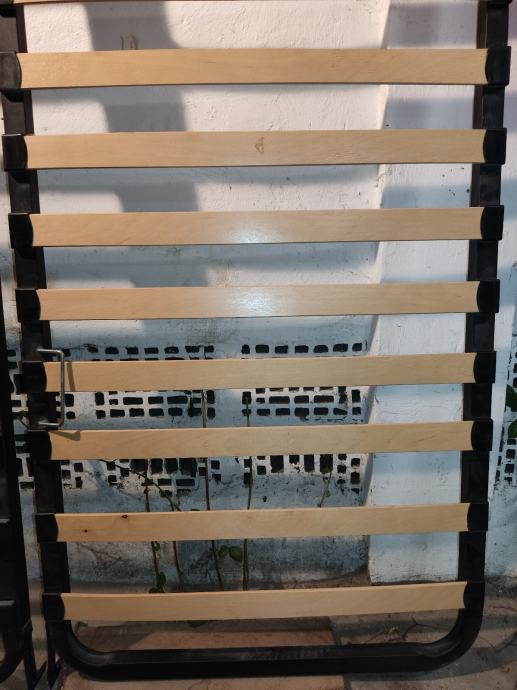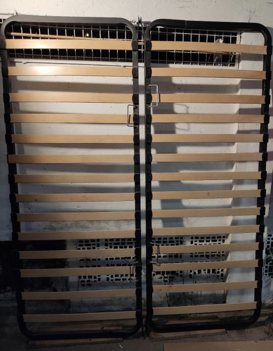 Okvir od željeza ,super čvrste ne škripe,a letvice su od punog drveta ljeske sve kao nove neoštečene