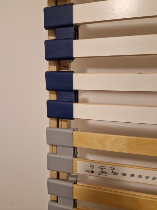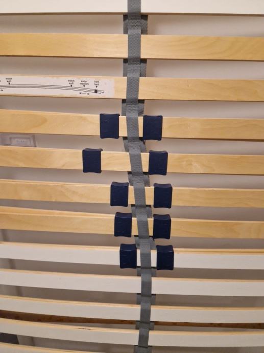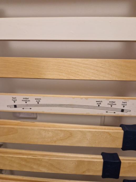 Podnice su kao nove. Sastoje se od 28 elastičnih letvica koje su podijeljene na 5 zona udobnosti. 5 od 28 letvica su dvostruke sa podesivom čvrstočom u lumbalnom i zdjeličnom djelu. Uzglavlje i nožni dio su podesivi što omogučuje ležanje sa uzdignutim uzglavljem odnosno sa povišenim djelom za noge. Za krevet dimenzija 90x200 cm. Cijena za komad: 50 €.