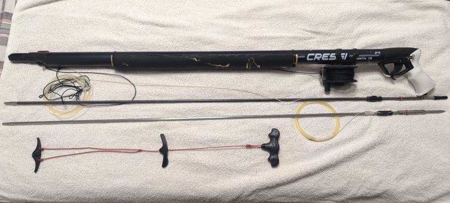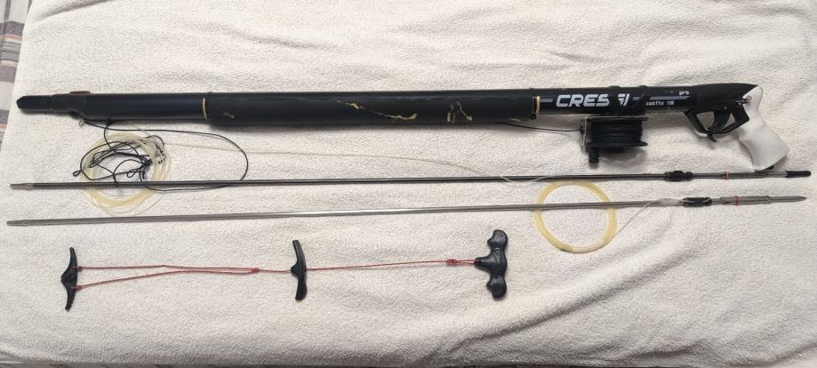 U ispravnom je stanju i spremna za korištenje. Uz pušku dolazi originalni cressi mulinel R50 sa 50m konopa, dvije strijele i dodatna brtva za vakum glavu zajedno sa natezačima za lakše napinjanje strijele.