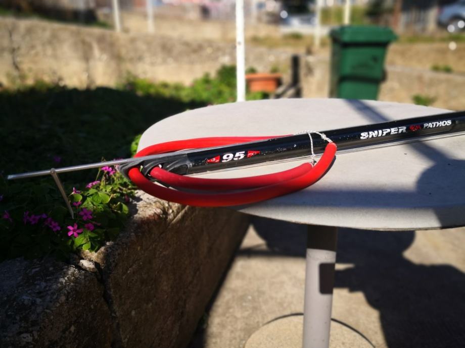 Prodajem podvodnu pušku Pathos Sniper 95 korištenu dvije sezone. Ručka DAngelo 3 universal , opremljena floaterom Sepia u obliku sipine kosti, reverzibilni mehanizam, strijela Pathos 6,75mm, 2 gume(TNT 16mm Power bands), mulinel Pathos i 50 metara konopa.