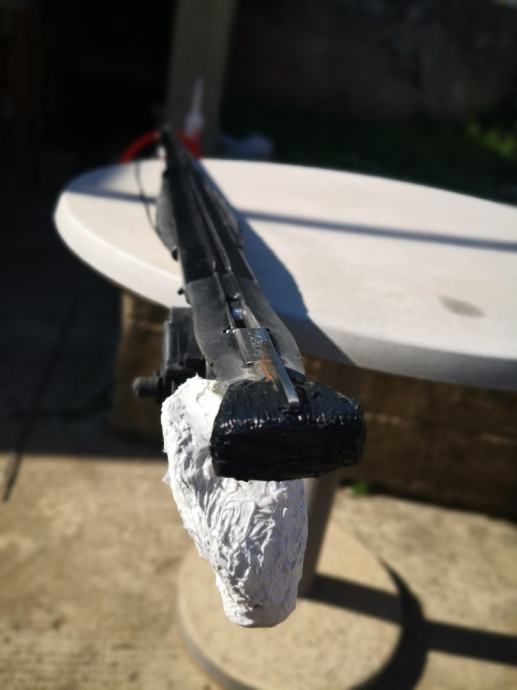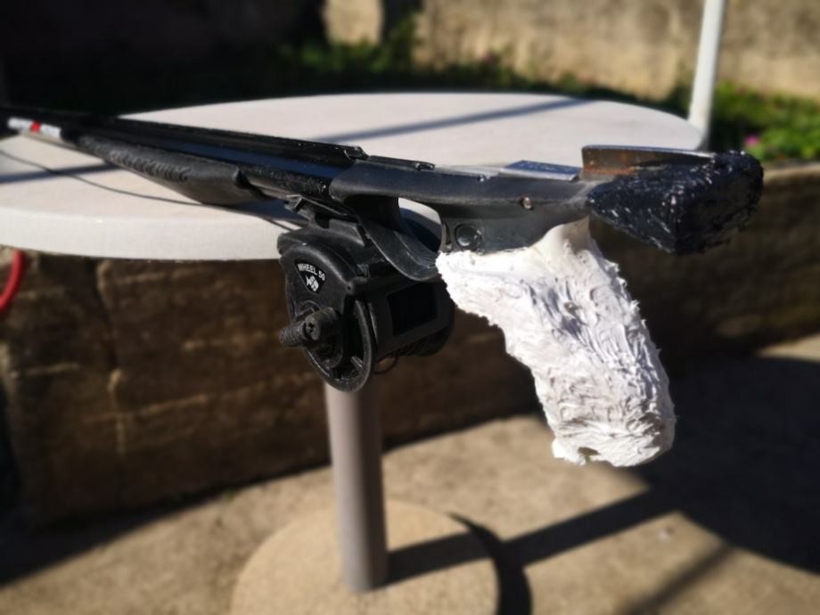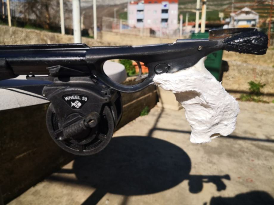 Puška je vrlo precizna, vodilica cijelom dužinom, drška je naknadno anatomski oblikovana sa epoxy smolom i bijelim silikonom za desnu ruku(skidam po želji).
